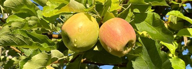 Zum Ende des Sommers oder zu Beginn des Herbstes werden auch überzählige Blätter vorsichtig von Hand entfernt, damit die Äpfel möglichst viel Sonnenlicht abbekommen.