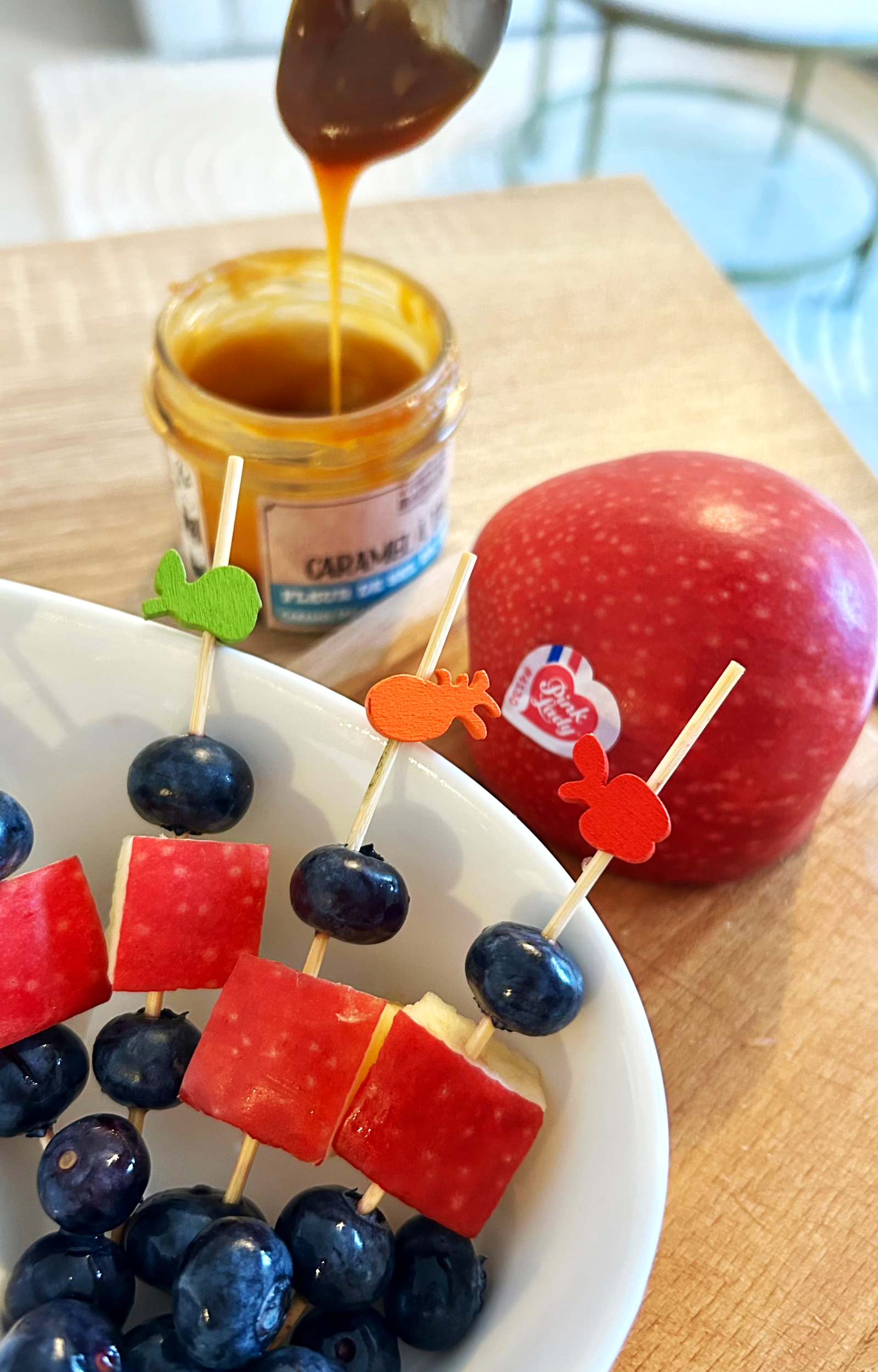 - Die Apfel-Heidelbeer-Spieße mit etwas Karamell beträufeln, was perfekt zum ausgewogenen Geschmack der Heidelbeeren passt.
