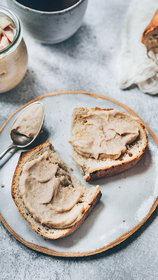 - Anschließend die Äpfel mit einem Mixer zusammen mit dem Kokosöl und dem Mandelpüree pürieren.