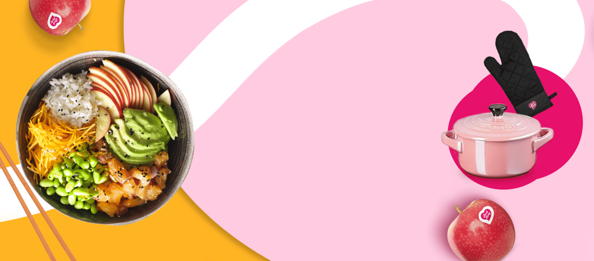 Anmäl dig till Pink Lady®-nyhetsbrevet senast den 31 januari för att delta i den stora Pink Remix-tävlingen. Delta i utlottningen om ett av de fem köksseten* som du kan använda för att laga till dina favoritrecept.