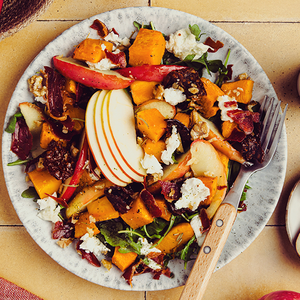 Lass dich zuallererst von Elodie, alias @Welowcook, mit ihrem Rezept für eine Herbstbowl mit Pink-Lady®-Äpfeln, Ziegenkäse und geröstetem Kürbis verführen.